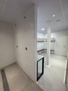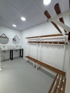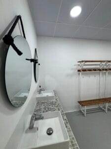 Espacio cómodo para cambiarte y guardar tus cosas con tranquilidad. Contamos con taquillas, vestuarios amplios y duchas con buena presión y agua caliente, para que puedas refrescarte y relajarte después de jugar o entrenar.